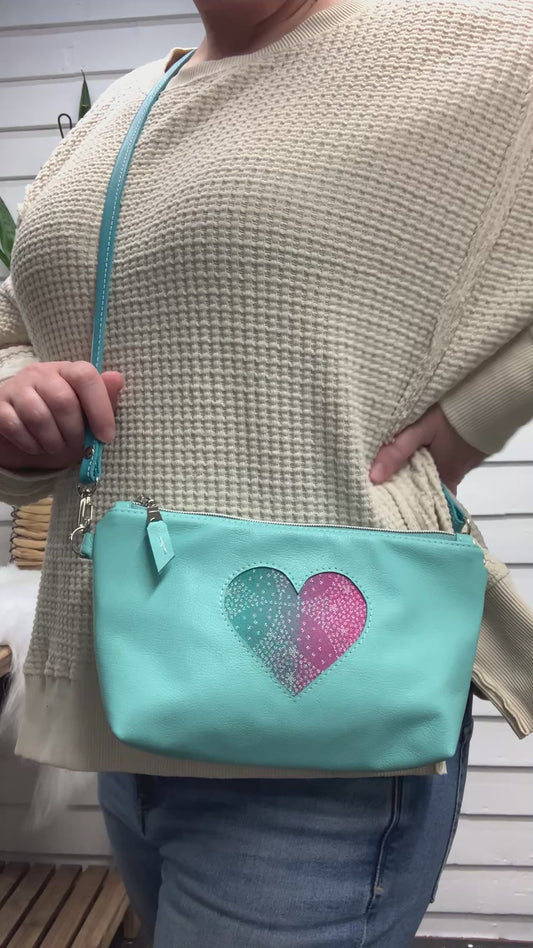 Ruby crossbody bag Oscha Maui wrap scrap heart, Aqua pebble grain leather