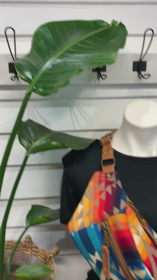 Wool and leather hobo bag, Pueblo Dwelling wool fabric, brown genuine leather
