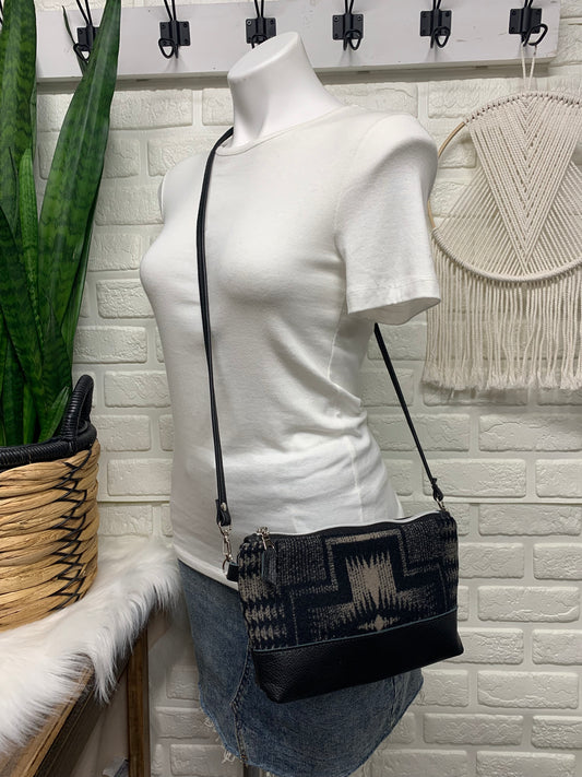 Onyx hobo crossbody bag, Echo Peaks wool, caramel leather