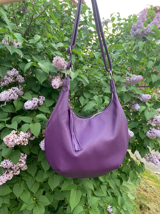 Onyx hobo bag, Purple Italian pebble grain leather crossbody