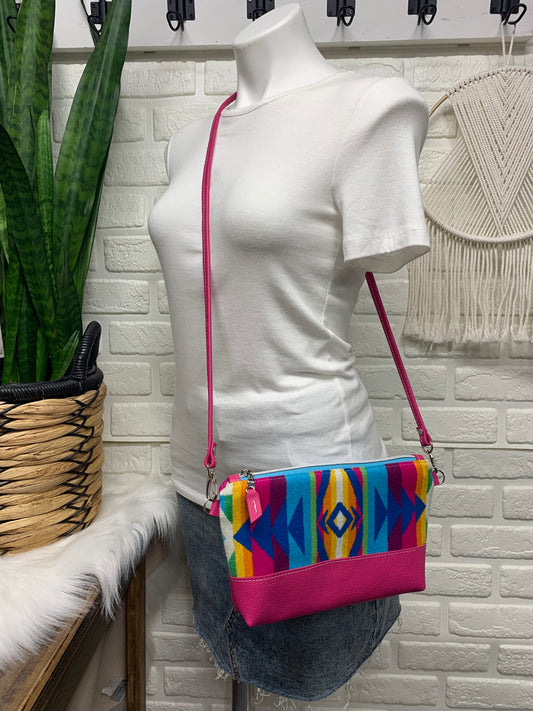 Jade Sling bag Wildflower Navy and Teal leather crossbody