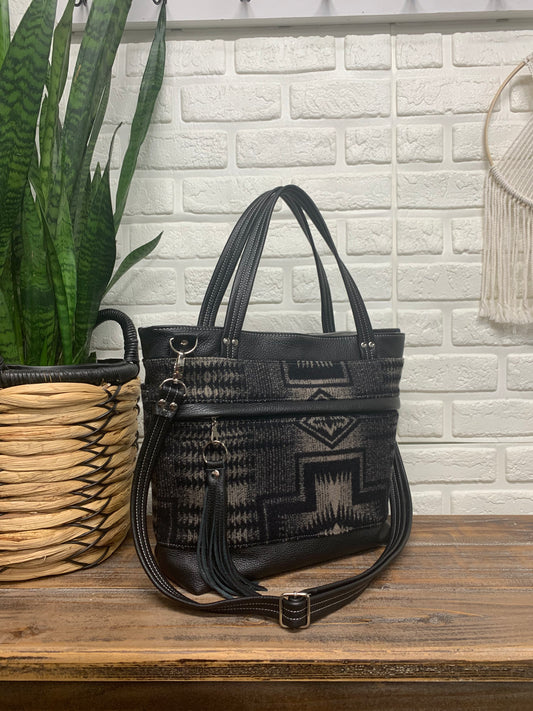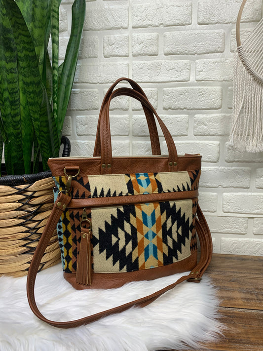 Topaz tote Wool and leather, Rancho Arroyo, spice brown genuine leather