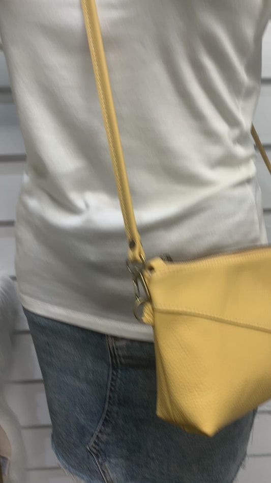 Emerald crossbody bag, San Gabriel wool, yellow turquoise leather, square bag
