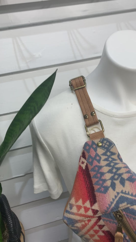 Jade Sling bag Pueblo dwelling wool and black leather crossbody