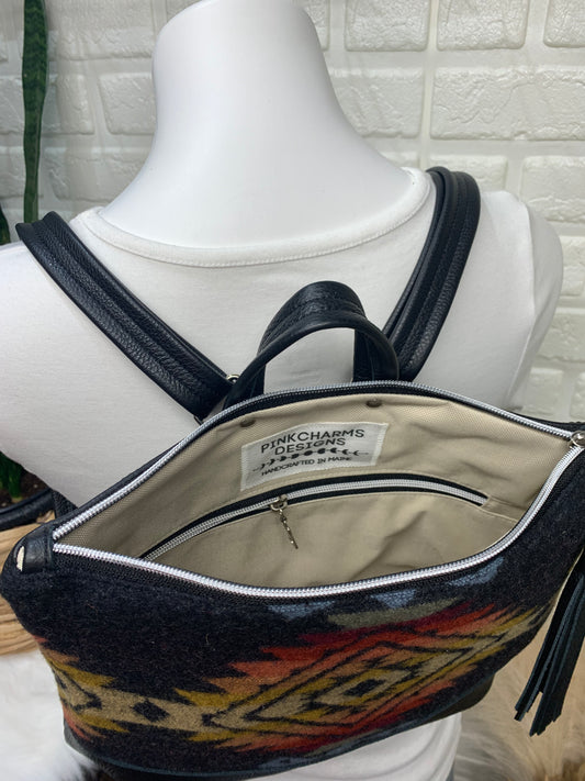 Pearl Backpack wool and black genuine leather, Pueblo Dwelling wool
