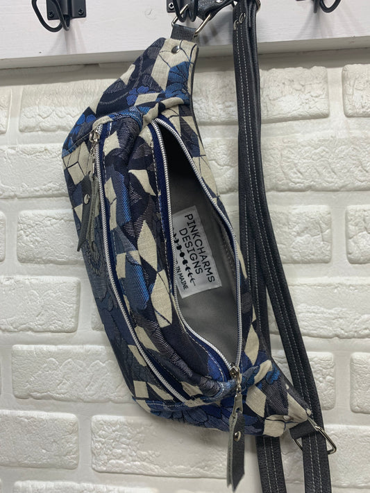Jade Sling bag Woven Wings wrap scrap and grey leather crossbody