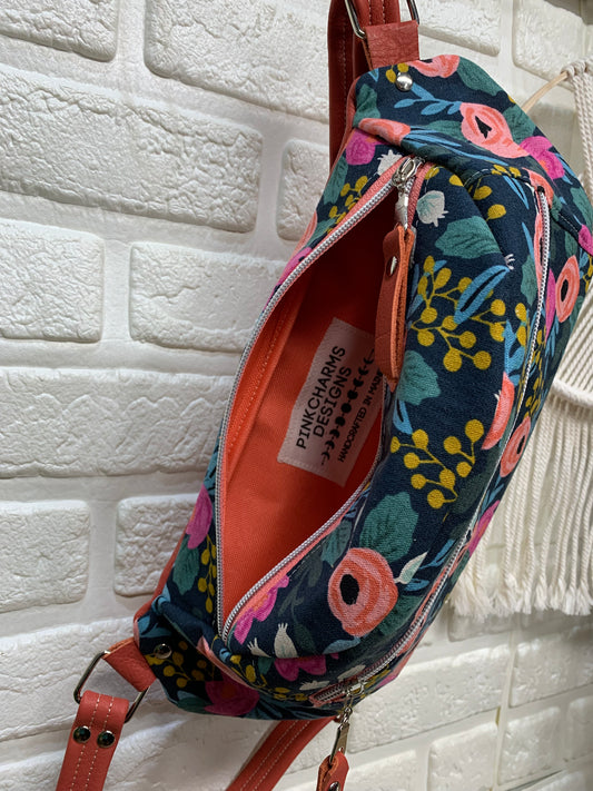 Jade Sling bag Rosa Floral and leather crossbody, Fanny pack