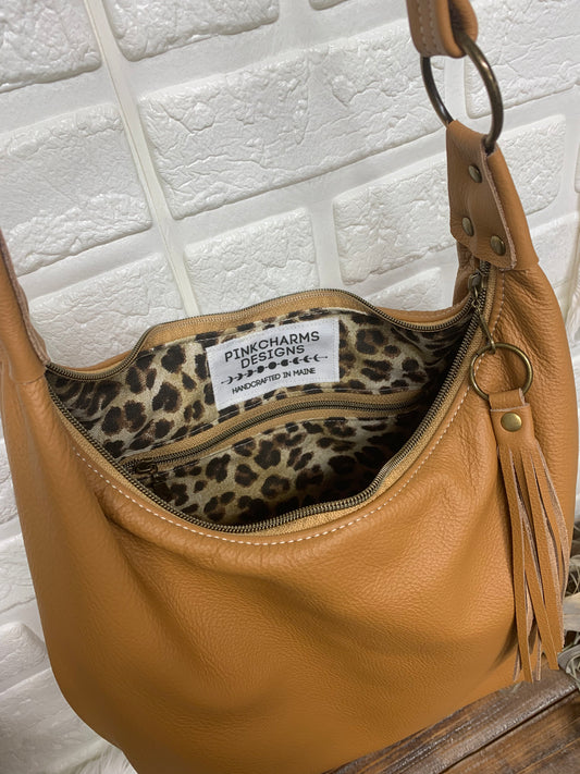 Caramel leather hobo bag, genuine leather handbag