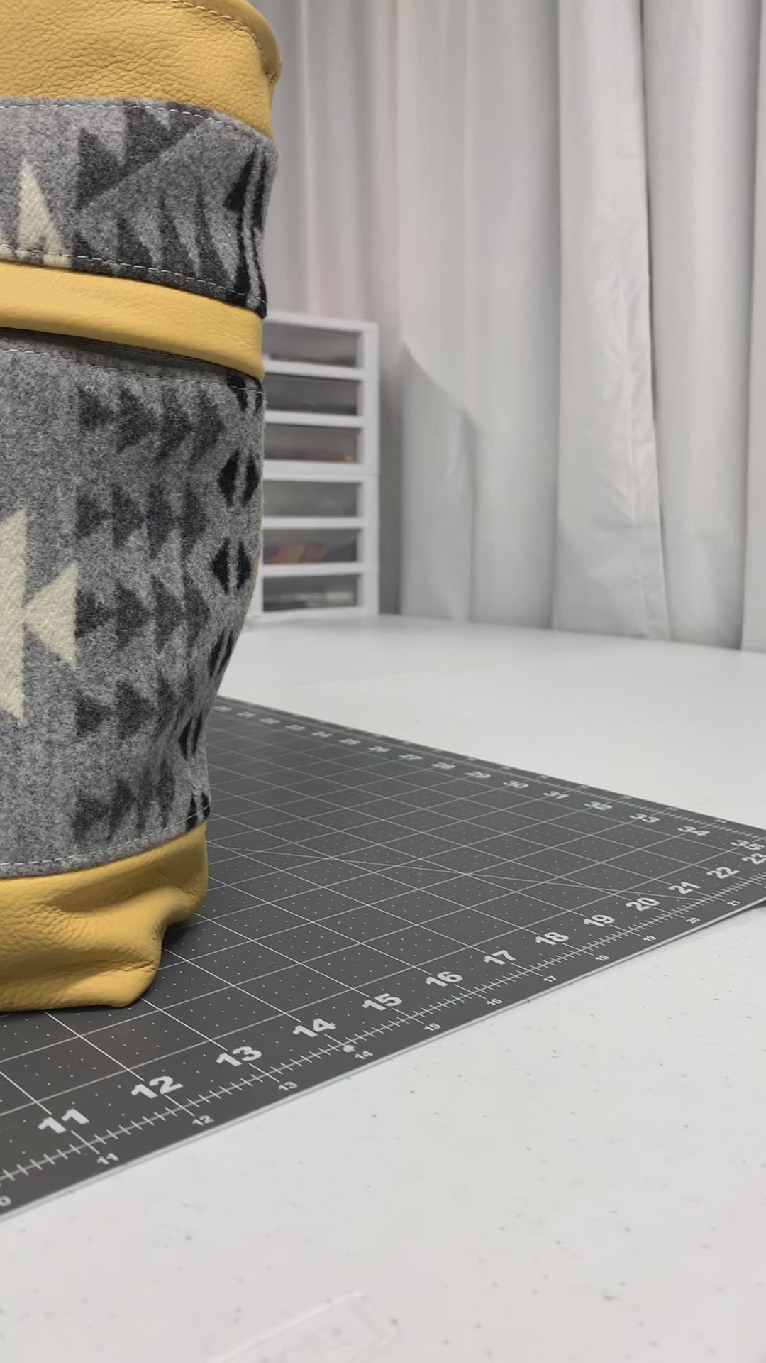 genuine leather, nylon coil zippers, waterproof canvas, Pendleton wool