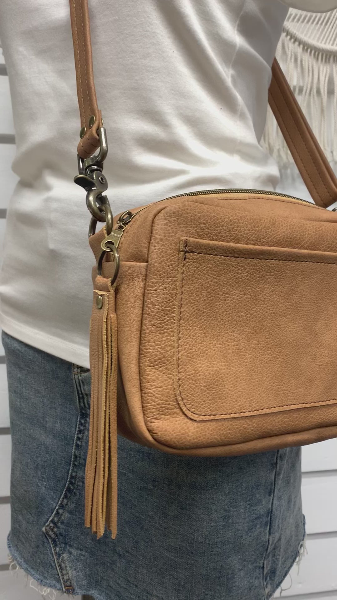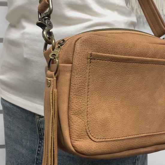 Emerald crossbody bag, Caramel brown pebble grain leather