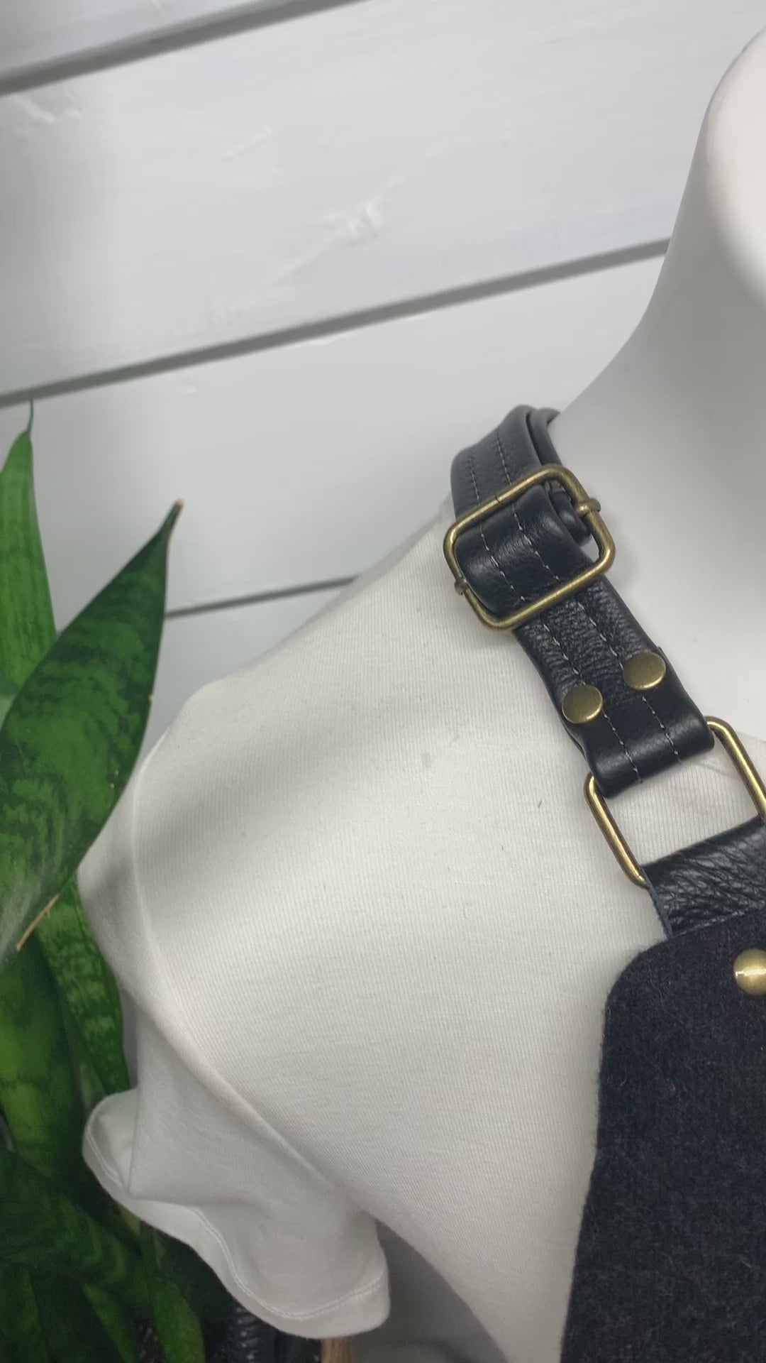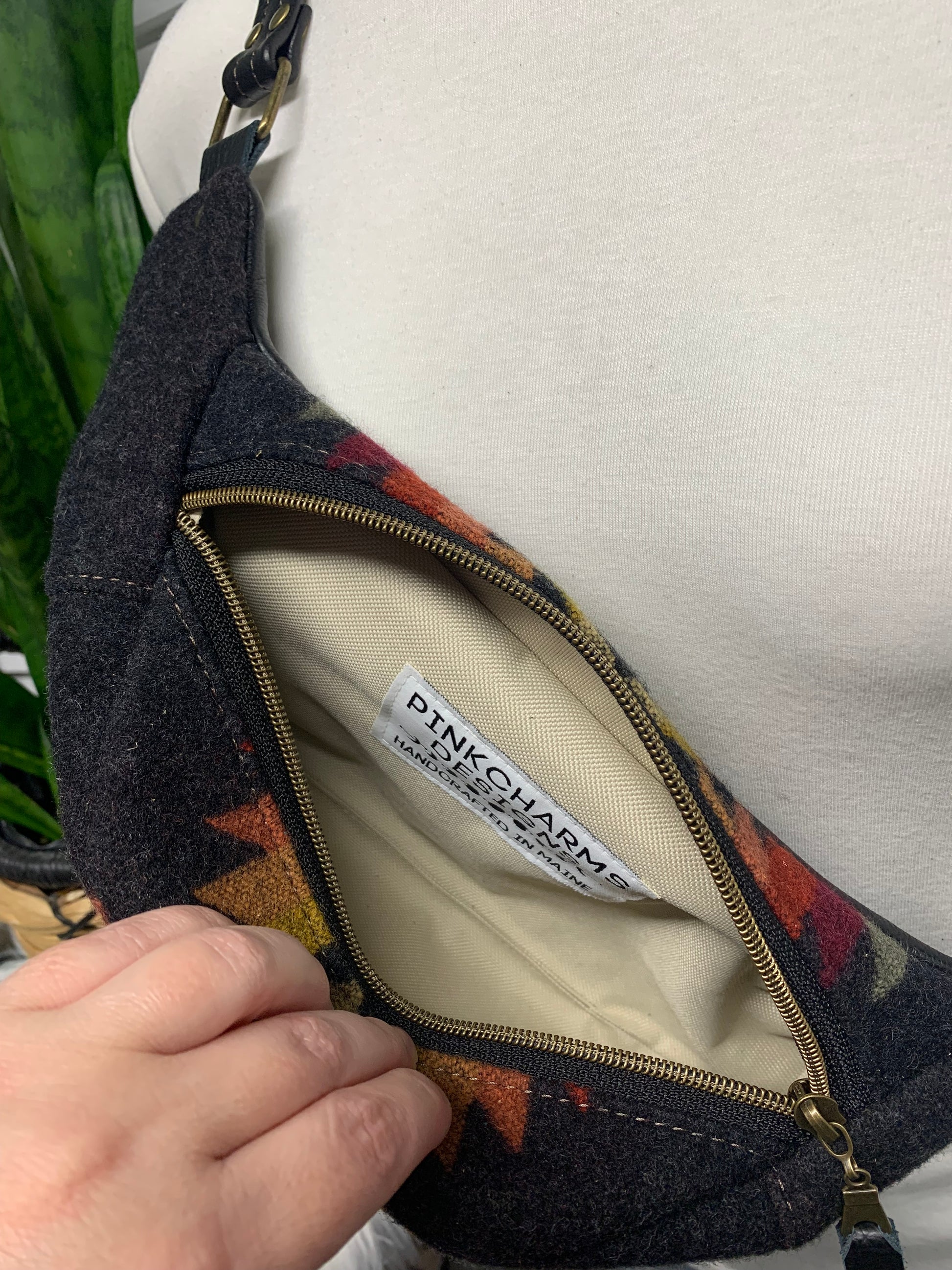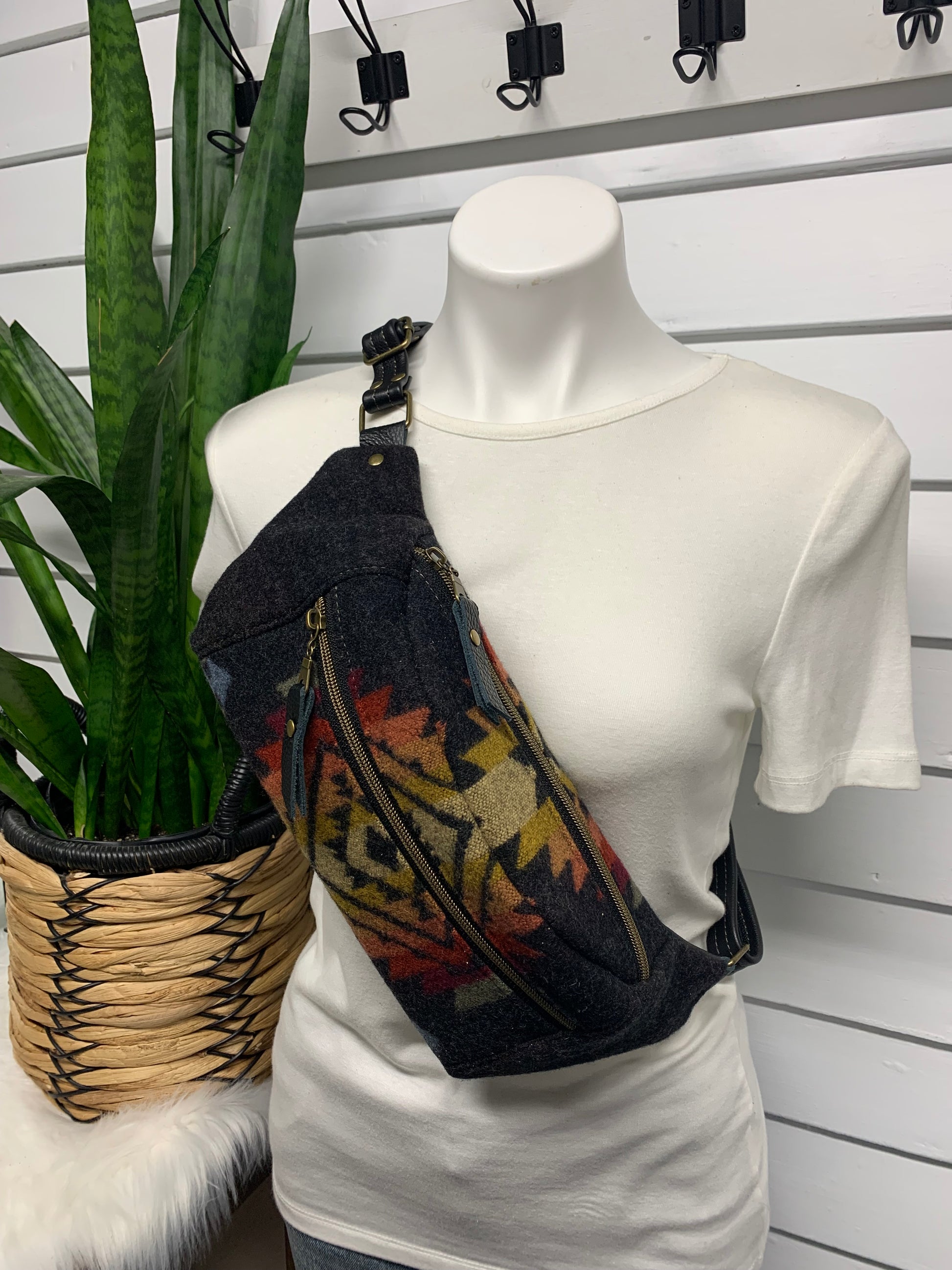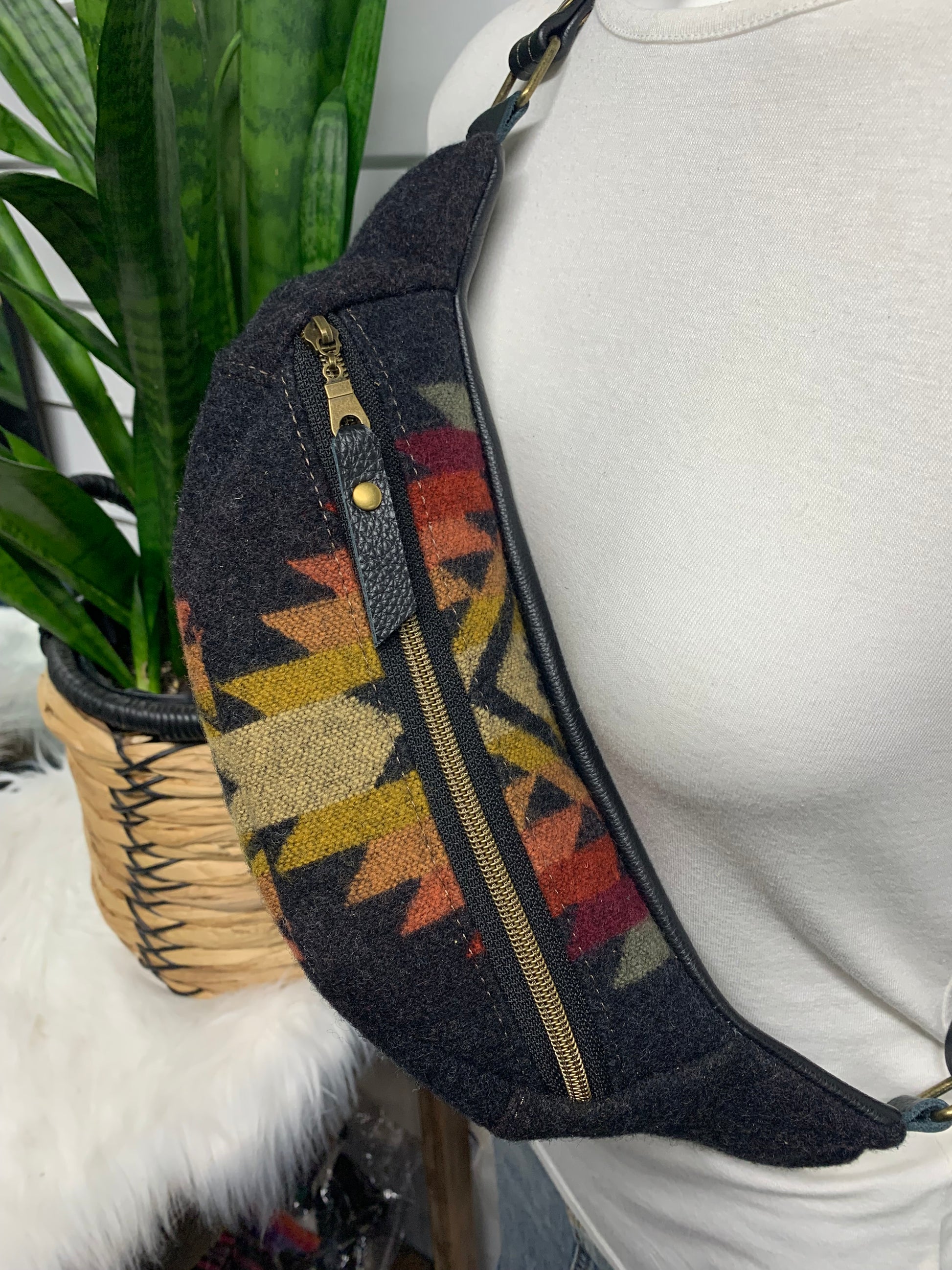 Jade Sling bag Pueblo dwelling wool and black leather crossbody