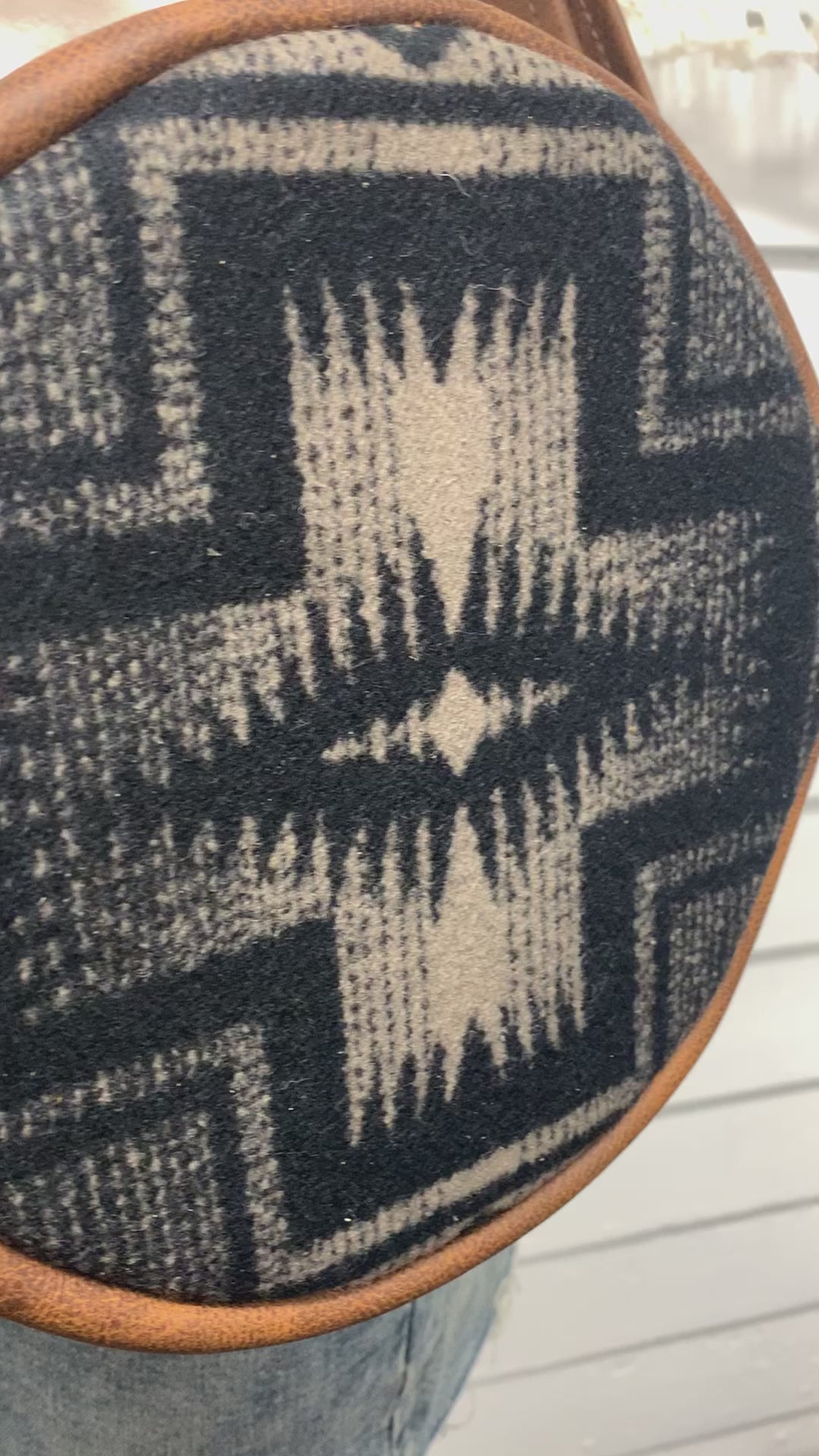 •Pendleton wool in Harding Black pattern with saddle brown leather