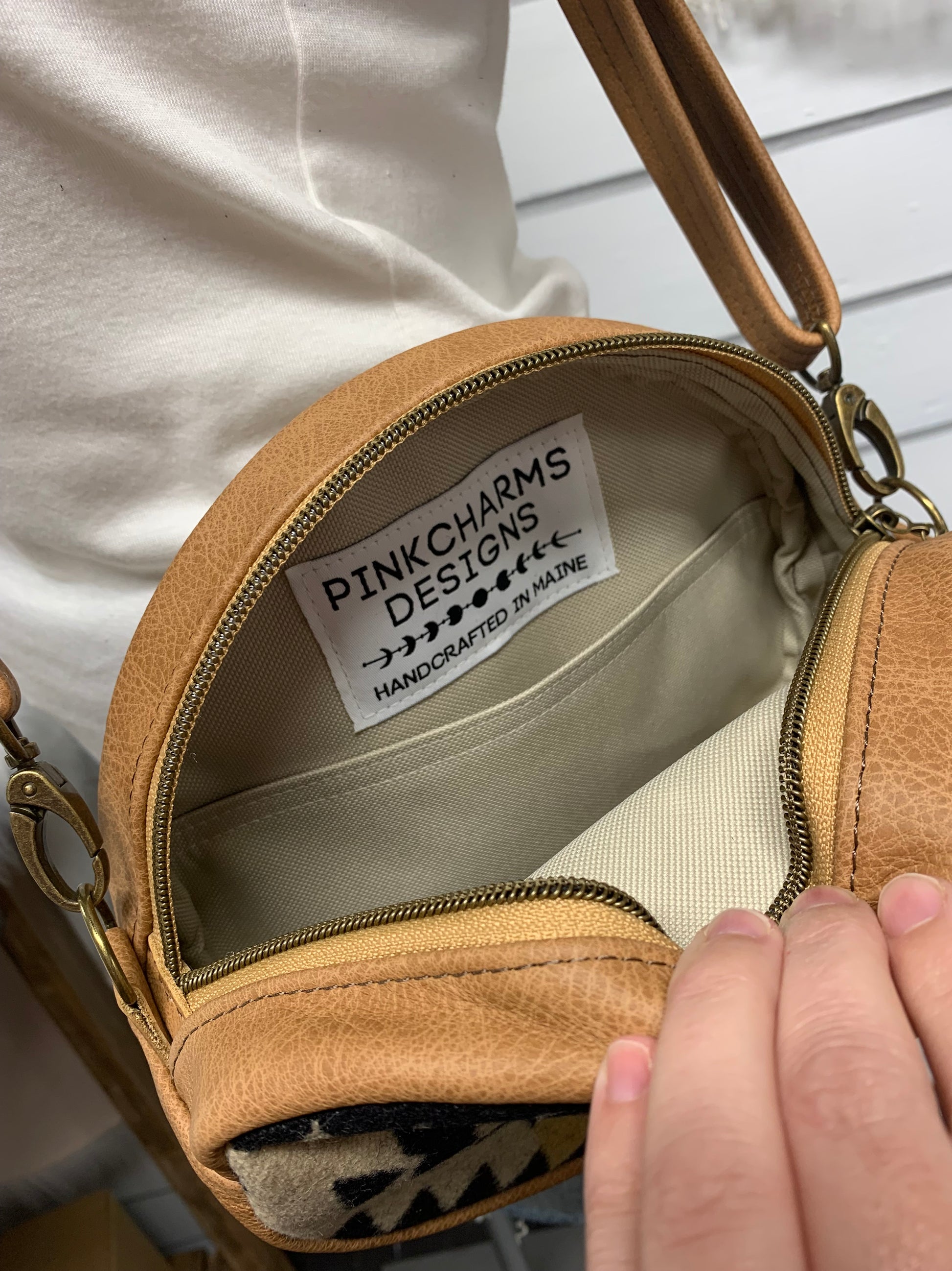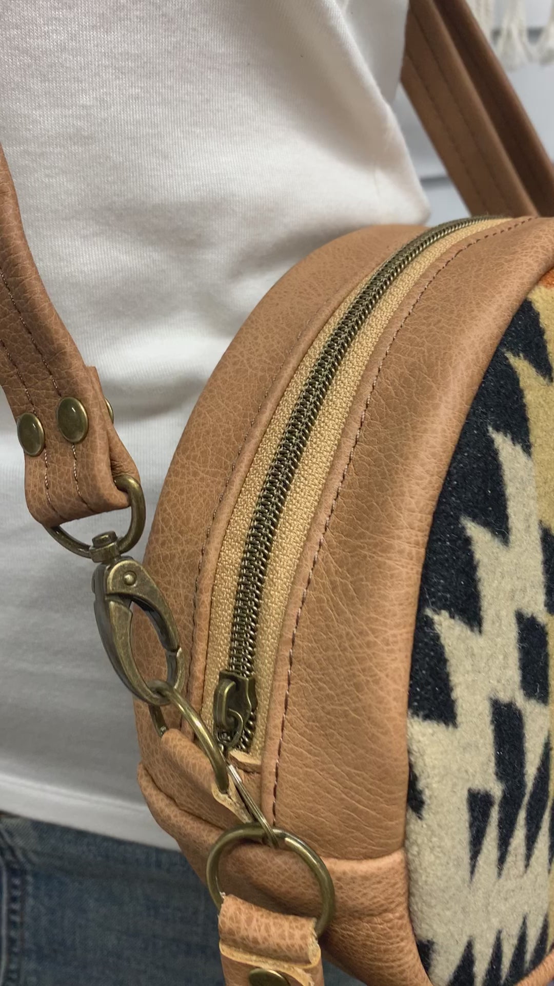 Moonstone crossbody bag, Rancho Arroyo black wool, Circle bag