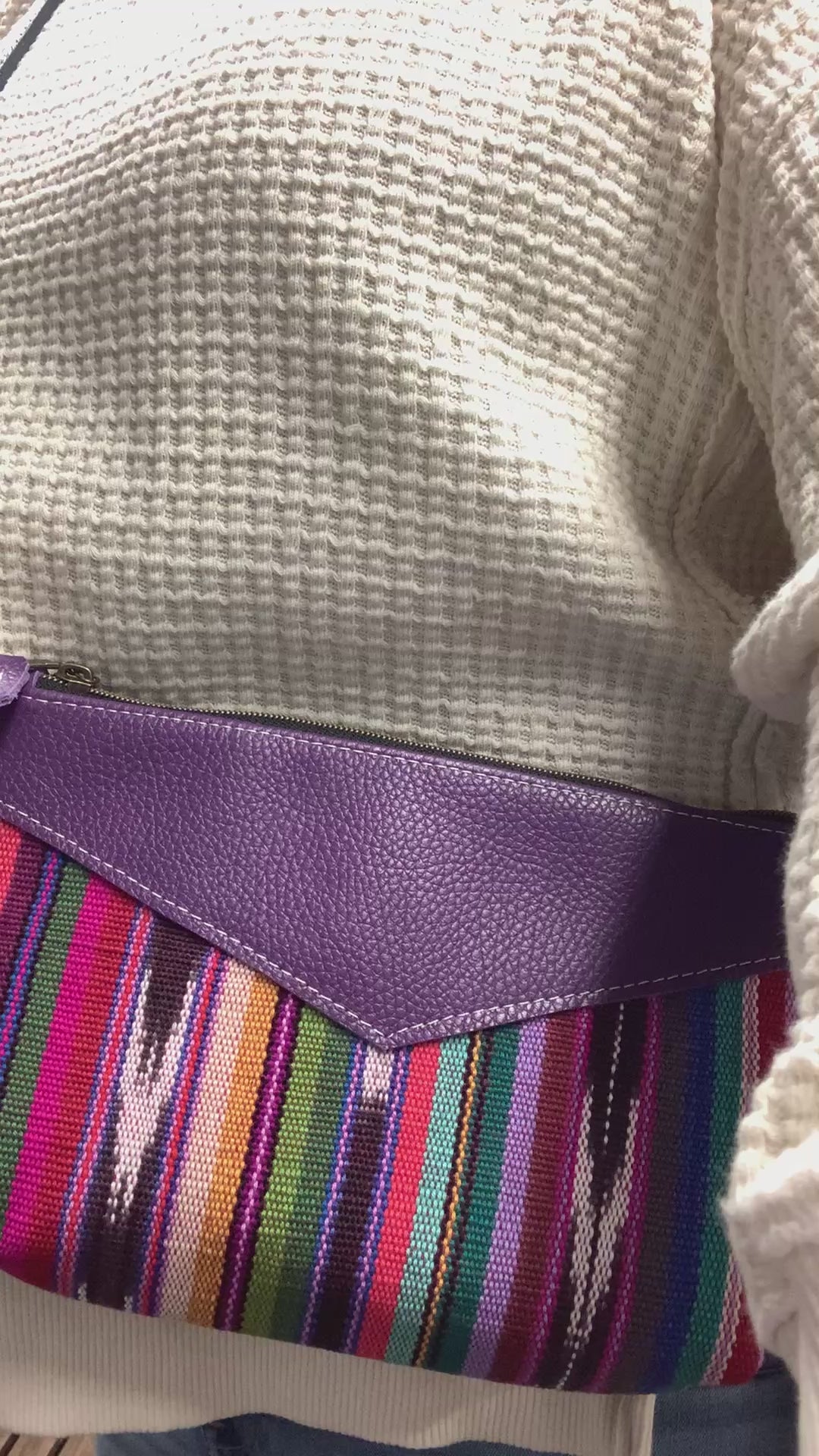 Ruby crossbody bag Guatemalan woven fabric, purple Italian leather