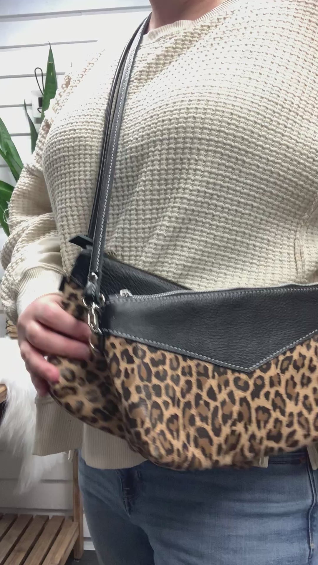 Made with Leopard pattern printed leather and black leather with silver or antique bronze hardware!