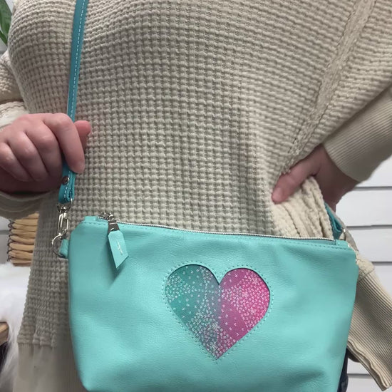 Ruby crossbody bag Oscha Maui wrap scrap heart, Aqua pebble grain leather
